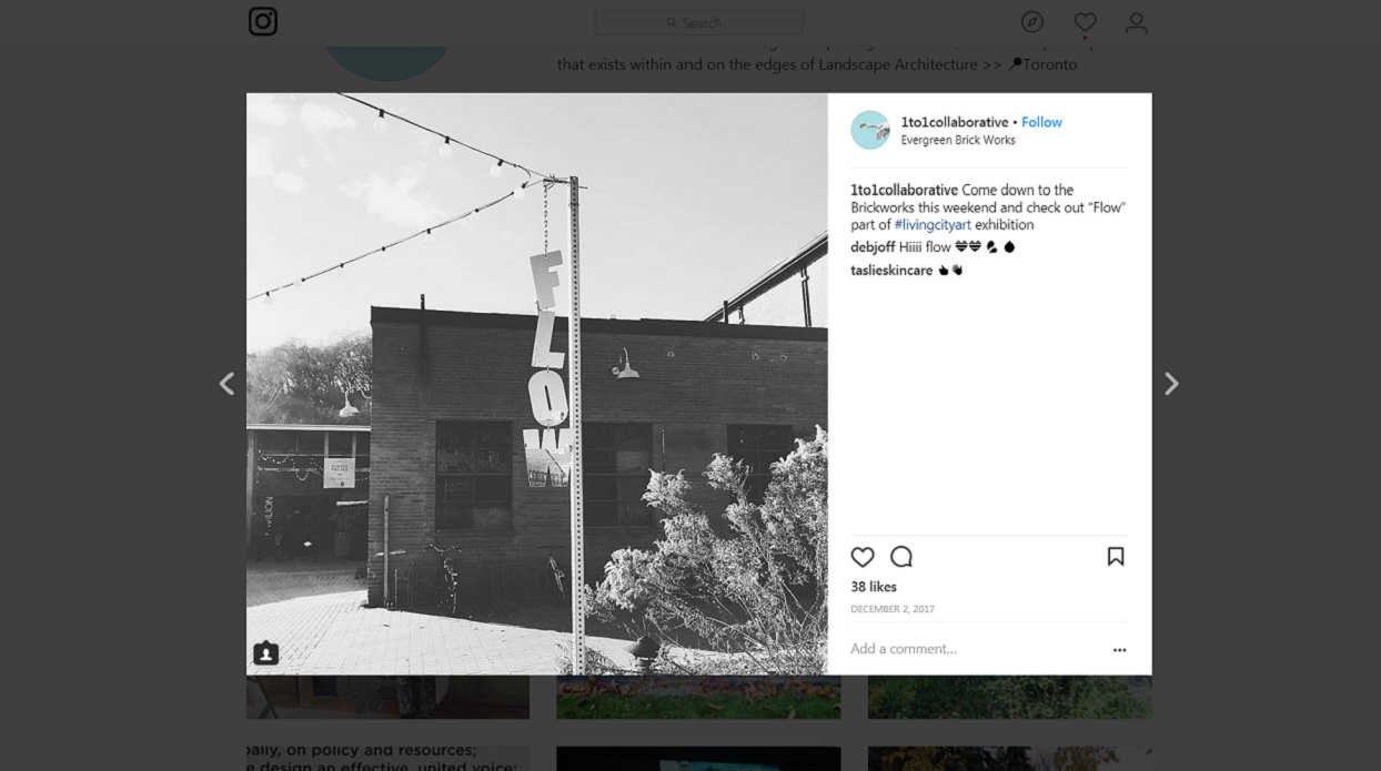 1:1 Collaborative spread audio representations of Toronto’s river systems throughout the grounds of the Evergreen Brick Works to highlight these hidden natural systems.